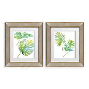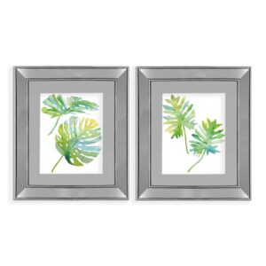 Este set de 2 cuadros palma acuarela tienen un marco de espejo de 6cm y fino borde de folia plata, además incluyen un fondo espejo que le da amplitud al diseño. Por sus medidas de 43 x 50cm c/u, es ideal para decorar algún rincón de tu hogar, sala de estar u oficina.
