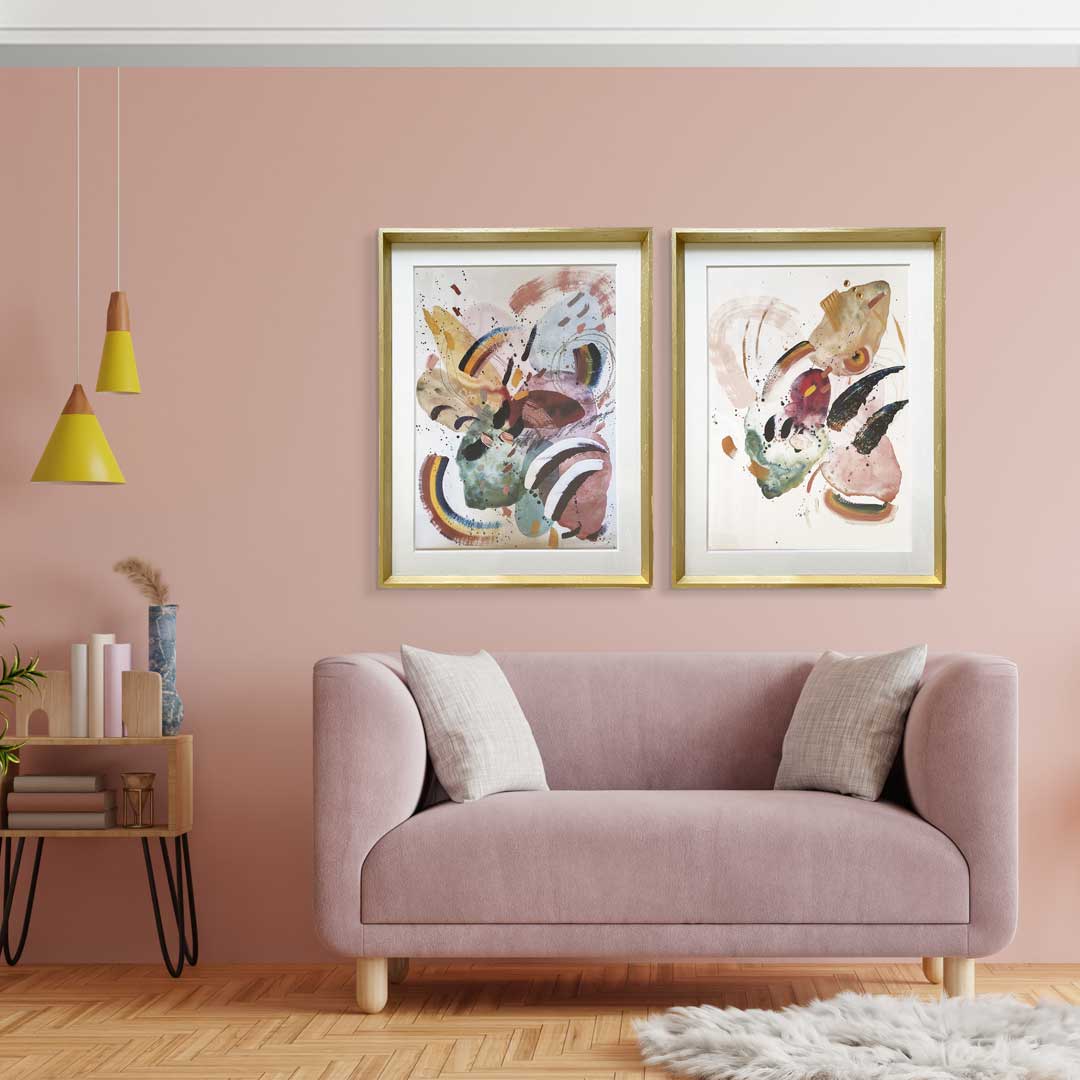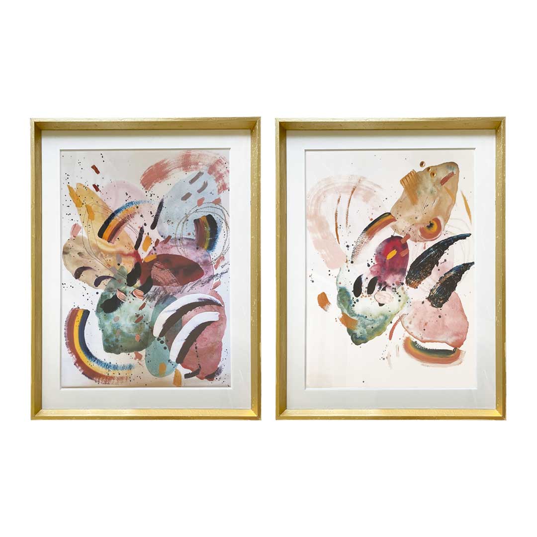 Set 2 Cuadros Abstract Colorful III Marco Pirámide Dorado – 84X64