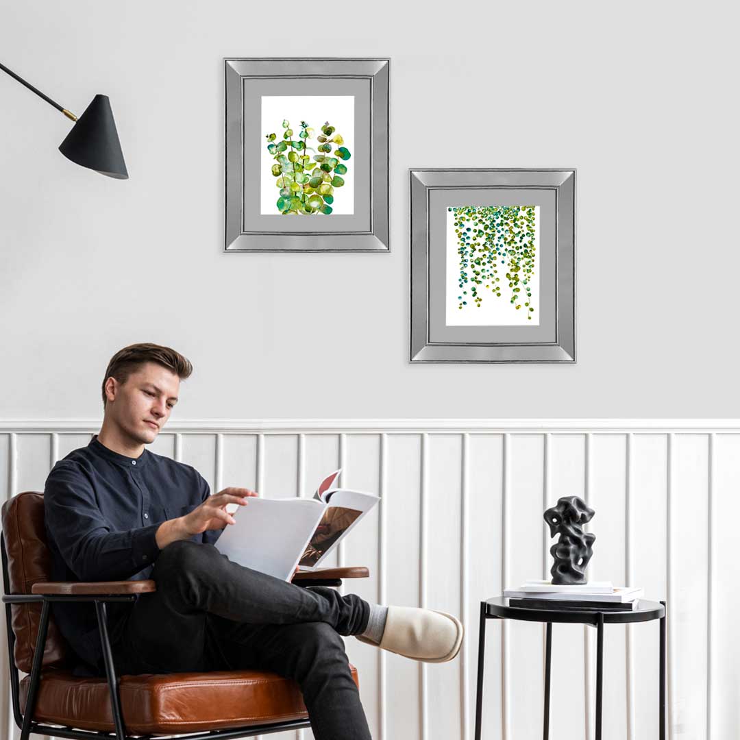 Set 2 Cuadros Eucalipto Rosario Marco Espejo Plata E – 43X50