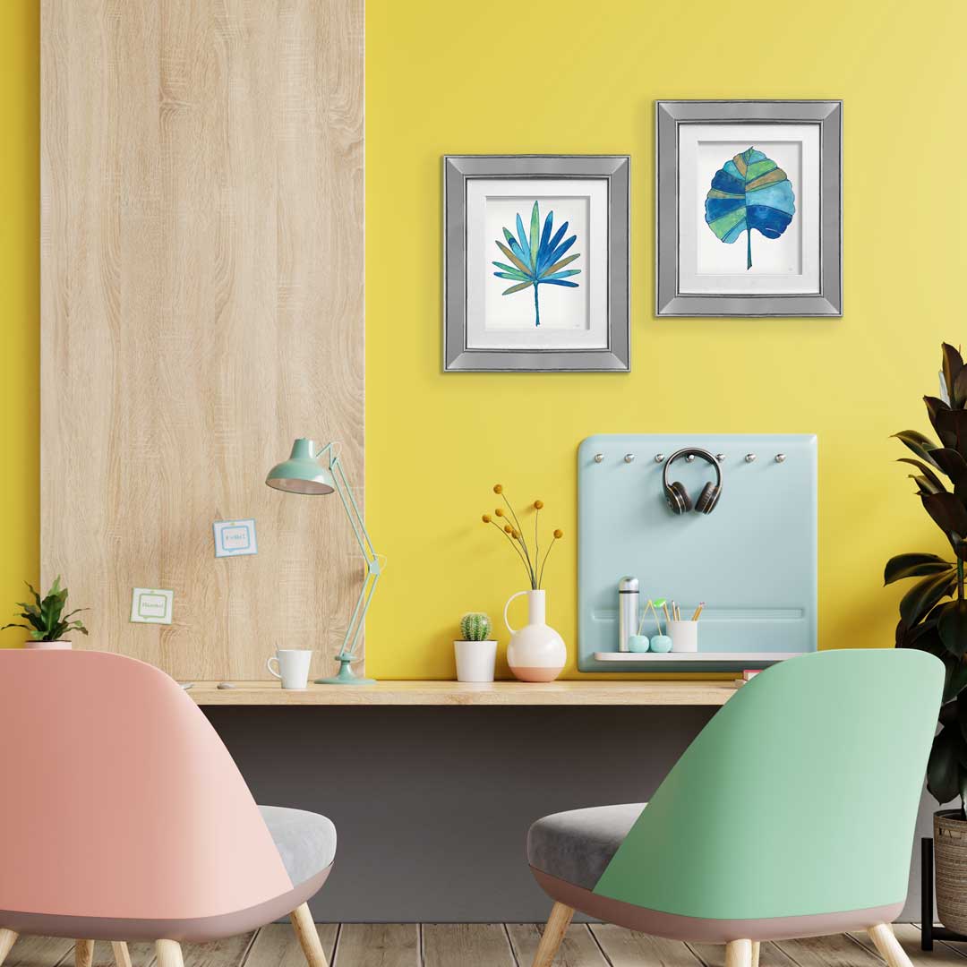Este set de 2 cuadros palma azul tienen un marco de espejo de 6cm y fino borde de folia plata, además incluyen un fondo de foam que le da mayor profundidad al diseño. Por sus medidas de 43 x 50cm c/u, es ideal para decorar algún rincón de tu hogar, sala de estar u oficina.