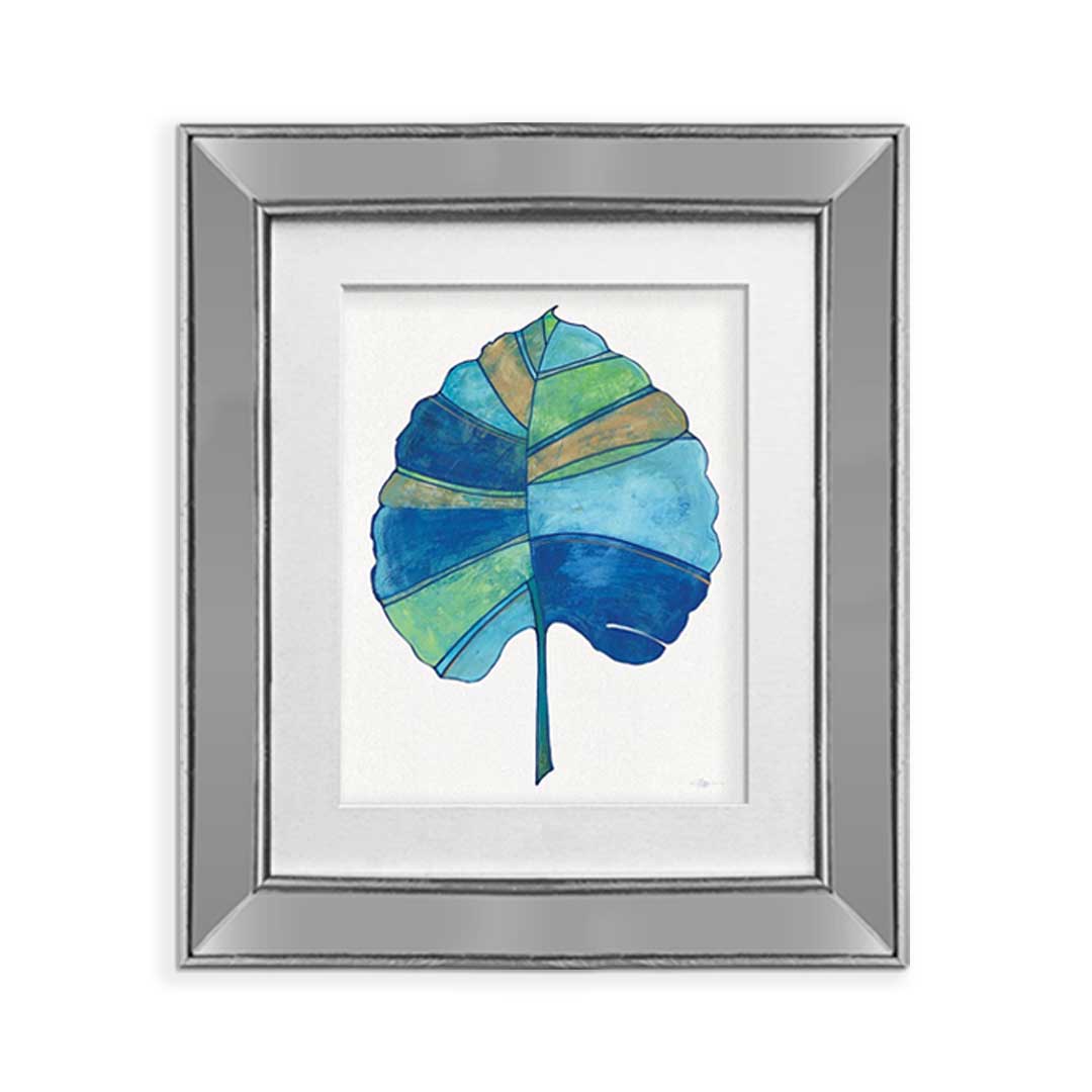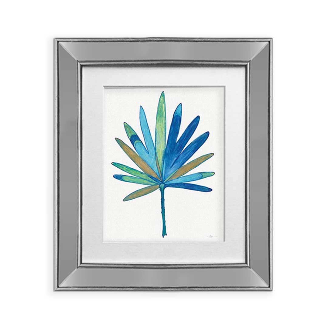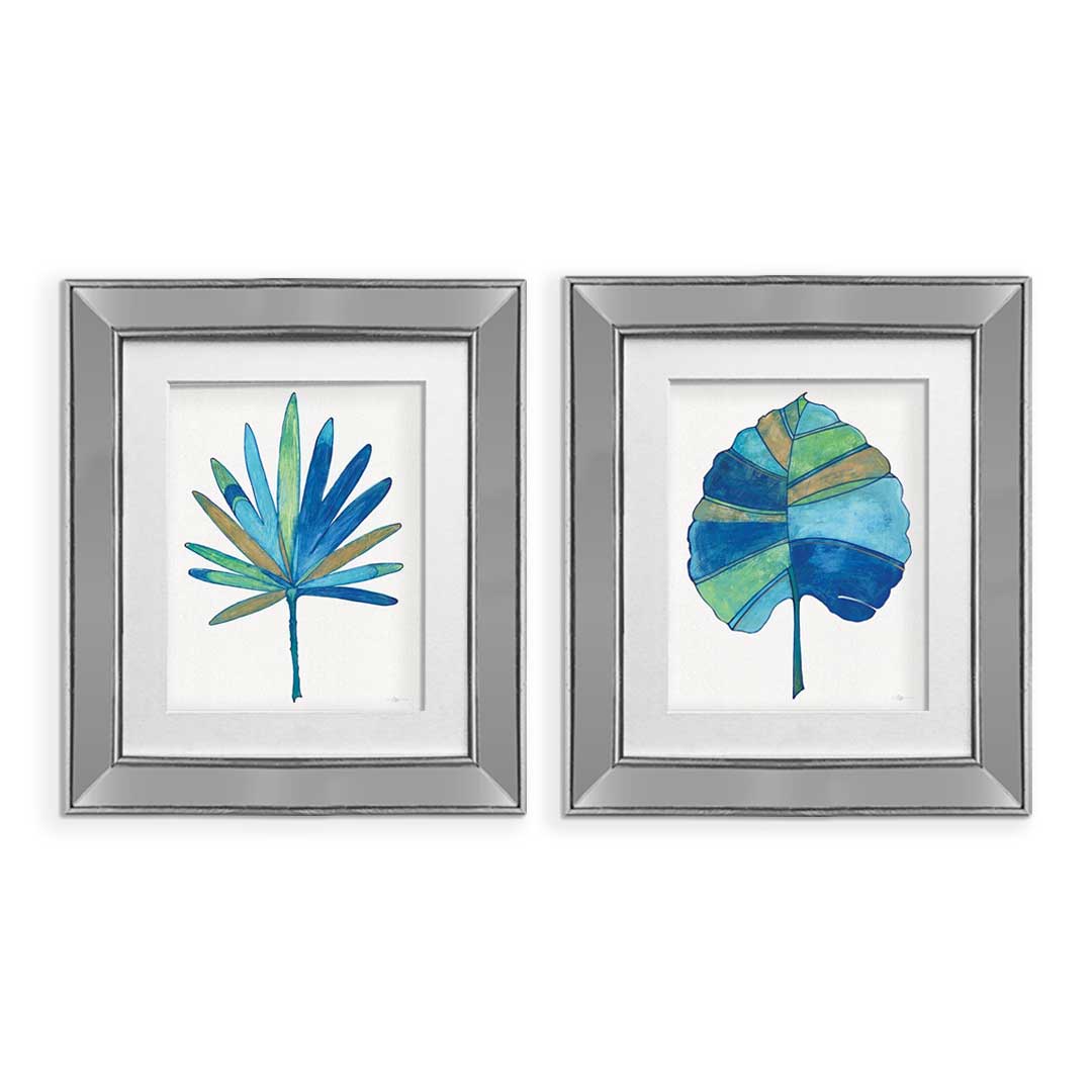 Set 2 Cuadros Palma Azul Marco Espejo Plata F – 43X50